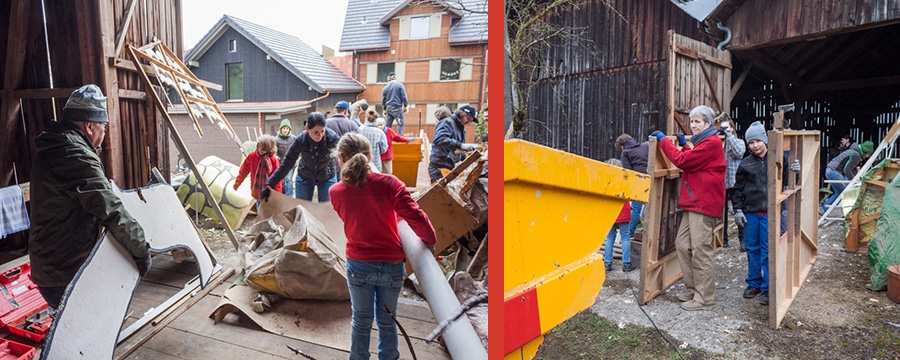 Seit mehreren Jahrzehnten lagerten Kulissen und Requisiten aus längst vergangenen Zeiten in einer örtlichen Scheune. Dass die Kulissen über längere Zeit sowohl Temperatur- als auch Feuchtigkeitsschwankungen ausgesetzt waren, sah man ihnen inzwischen an. Aus diesem Grund beschlossen wir, den alten Kulissenfundus zu räumen und den Platz freizugeben.