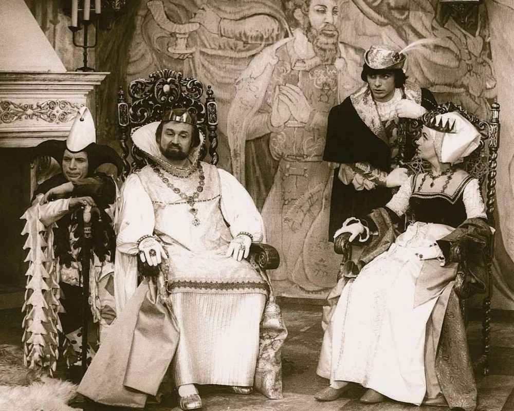 Der König (Rolf Hoppe) und die Königin (Karin Lesch) reden dem Prinzen (Pavel Trávníče) ins Gewissen.