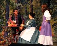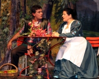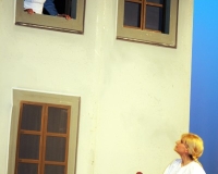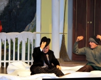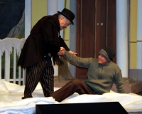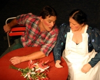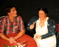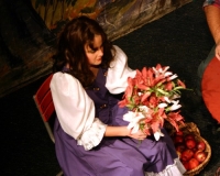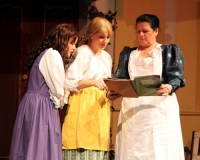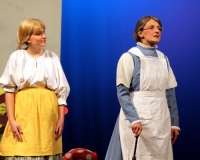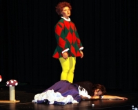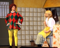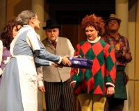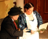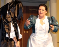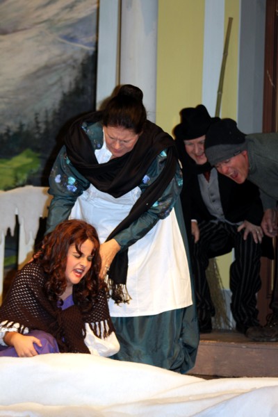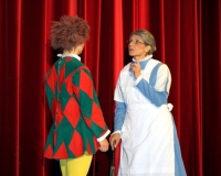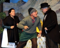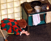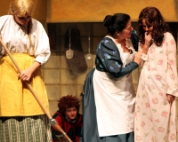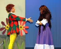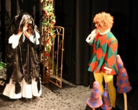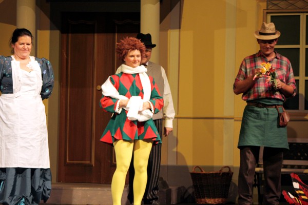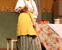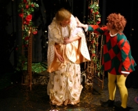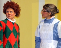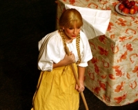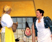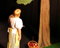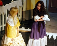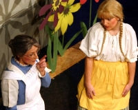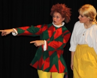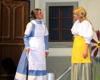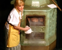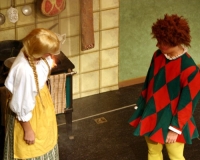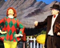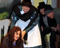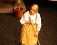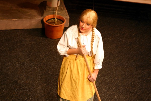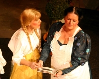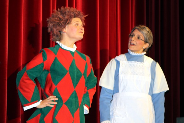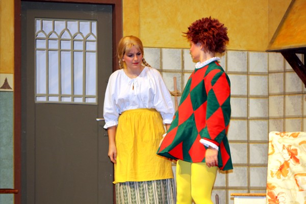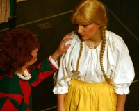 Vreneli (Laura Beck, links) wird von ihrer Mutter (Anna Hodel) wie eine Magd behandelt.Plötzlich schaut der Kobold Zwirbli (Prisca Portmann, rechts) im Auftrag von Frau Holle bei der Familie Bölsterli vorbei.Als er erfährt, wie ungerecht Vreneli behandelt wird......beschliesst er, ihr zu helfen.In der Zwischenzeit ist auch Vrenelis faule Schwester Marie (Rahel Lisebach) aufgestanden.Jetzt wird es Zeit für ein zünftiges Zmorge.Auch Marie geht mit ihrer Schwester nicht sehr warmherzig um.Aus seinem Versteck beobachtet Zwirbli diese bodenlose Frechheit......und sorgt dafür, dass sich Marie die Zunge verbrennt.«Auaaaaa!»«Du Armes. Dafür gibt es jetzt ein Schöggeli für dich!»Zwirbli verspricht, alles seiner Meisterin zu berichten.Denn obwohl Frau Holle eine strenge Frau ist, setzt sie sich immer für die Gerechtigkeit ein.Vreneli bleibt nichts anderes übrig......als weiterhin das Dienstmädchen zu spielen.Zwirbli macht sich unterdessen auf den Weg zu Frau Holle, und zwar...«...uf em Vorenabe-hendenufe-zrengeltome-zwöschetore-näbetosse-Wägli.»Als Vreneli am Nachmittag den Garten kehrt......bekommt Familie Bölsterli Besuch vom Gärtner Blättli (Robi Lisebach).Blättli wird von seinem ewigen Pfnüsel geplagt.Witwe Bölsterli lädt den Gärtner auf eine Tasse Kaffe ein.....und schwärmt von ihrer lieben Tochter Marie.Aber Gärtner Blättli findet Vreneli eigentlich viel netter.Als Marie kurze Zeit später auftaucht......weiss sie weder den Besuch noch seine Geschenke, die er der Familie mitgebracht hat, zu schätzen.«Sie meint es gar nicht so!» beschwichtigt Witwe Bölsterli.Bald darauf erscheint Lehrer Buume (Hansruedi Kaiser, rechts), der sich den ganzen Tag über allerhand ärgert.«Schauen Sie, Herr Blättli...»«...was Vreneli für einen Tintenfleck in ihrem Heft hinterlassen hat.» Da kann doch etwas nicht stimmen.Wieder einmal taucht Zwirbli auf......der den Lehrer zunächst ein bisschen an der Nase herumführt.«Du bist sicher kein Kobold, sondern ein Lausbub!»Besorgt zeigt Lehrer Buume Witwe Bölsterli den Tintenfleck in Vrenelis Heft.«Jetzt gibt es ein paar gesalzene Strafaufgaben.»Witwe Bölsterli verspricht, die Sache selbst in die Hand zu nehmen.Obwohl Vreneli versichert, den Tintenfleck nicht gemacht zu haben, glaubt ihr ihre Mutter kein Wort.Dass es Marie gewesen sein könnte, die die Seiten aus Neid vertauscht hat, kommt Witwe Bölsterli überhaupt nicht in den Sinn.Stattdessen trägt sie Vreneli noch mehr Strafaufgaben auf.«Bis morgen spinnst du zwölf Spindeln Garn!»Durch ein Missgeschick lässt Vreneli die Spindel in den Brunnen fallen......und muss sie wieder zurückholen. Frau Holle erfährt davon und will ihr helfen.Im Land von Frau Holle angekommen, zeigt Zwirbli Vreneli den Weg zu deren Haus.Auf dem Weg dorthin trifft sie auf einen sprechenden Apfelbaum......dessen reife Äpfel sie von seinen Ästen schütteln muss.Daraufhin bittet sie ein sprechender Backofen......seine fertig gebackenen Brote herauszunehmen.Bald darauf findet Vreneli das Haus von Frau Holle (Astrid Troxler, oben).Frau Holle macht Vreneli das Angebot......dass sie bei ihr wohnen und arbeiten könne.«Es gibt zwar viel zu tun bei mir...»«...aber dafür darfst du auch mein grosses Federkissen schütteln.»«Jetzt schneit es auf der Erde.»Als Vreneli aus Heimweh wieder nach Hause möchte......wird sie von Frau Holle mit einem Goldregen belohnt......und erhält ihre verlorene Spindel mit goldenem Garn zurück.Zu Hause beklagt sich Marie über die Arbeit, die seit Vrenelis Verschwinden an ihr hängen bleibt.Da sie sich zu schade ist, um den Vorplatz zu salzen......landet der verdutzte Gärtner Blättli auf dem vereisten Boden.Die helfende Hand von Lehrer Buume......macht die Situation auch nicht einfacher.«Das ärgeret eim! Das ärgeret eim!»«Was machen denn die werten Herren auf dem kalten Boden?»«Deine Faulheit ist lebensgefährlich, Marie Bölsterli!»Als Marie selbst auf dem spiegelglatten Boden ausrutscht......ist die Schadenfreude gross.Bevor sich Zwirbli von Vreneli verabschiedet......schenkt er ihr noch zwei Zaubertränke. Einen gegen Ärger, der andere gegen Pfnüsel.Marie traut ihren Augen kaum......und der Neid kehrt augenblicklich zurück.Von den anderen wird Vreneli wärmstens empfangen......und sie berichtet ihnen von ihrem Abenteuer.Lehrer Buume überreicht sie ein Fläschen des Zaubertrankes.Nachdem dieser einen Schluck davon getrunken hat, ärgert ihn auf einmal nichts mehr.Auch Gärtner Blättli erhält von Vreneli ein Fläschen des Zaubertranks.Die Medizin schmeckt fürchterlich......und brennt im Hals. Trotzdem wirkt sie aber wie ein Wunder.Beim Anblick der goldenen Spindel beschliesst Marie, es ihrer Schwester gleich zu tun.Im Land von Frau Holle angekommen, wundert sich Zwirbli über den neuen Gast.Auf dem Prüfungsweg rührt Marie jedoch keinen Finger......und lässt Apfelbaum und Backofen links liegen.«Ich bin ja schliesslich kein Wegglibäcker!»Auch Frau Holle erschrickt über Maries unfreundliche Art......und selbst Zwirbli lässt sie eiskalt abblitzen.Zwirbli beobachtet Maries handwerkliches Geschick aus der Ferne......aber viel zu sehen gibt es wirklich nicht gerade.Stattdessen besteht Marie darauf......endlich ihren verdienten Lohn zu erhalten.Doch unter dem grossen Zaubertor......erwartet sie eine böse Überraschung.Statt Gold regnet es schwarzes, klebriges Pech.Frau Holle tut es zwar sichtlich leid, aber gerechte Strafe muss sein.Auf dem Heimweg beginnt Marie, über ihre Taten nachzudenken.Doch Zwirbli hat kein Gehör und will Marie so schnell wie möglich zu Hause abliefern.Beim Haus angekommen, wird sie vom Hahn verraten......und die Mutter erschrickt ausserordentlich bei diesem traurigen Anblick.Langsam scheinen Mutter und Tochter ihre Fehler zu bereuen.«Das kommt davon, wenn man das ABC und das 1x1 nicht lernt.»Durch Maries Jammern taucht auf einmal Frau Holle auf.«Ich verspreche hoch und heilig, dass ich mich bessern werde.»«Du mu