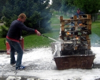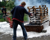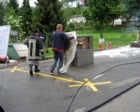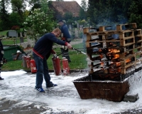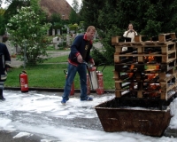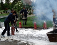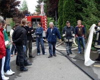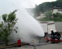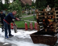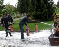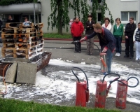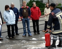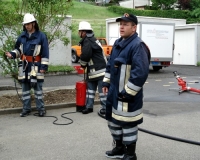 Neumitglied Carlos sowie weitere Vereinsmitglieder durften sich an der Feuerlöschübung beim Altersheim Lindenrain aktiv betätigen und wichtige Informationen zum Umgang mit Feuerlöschern mitnehmen.