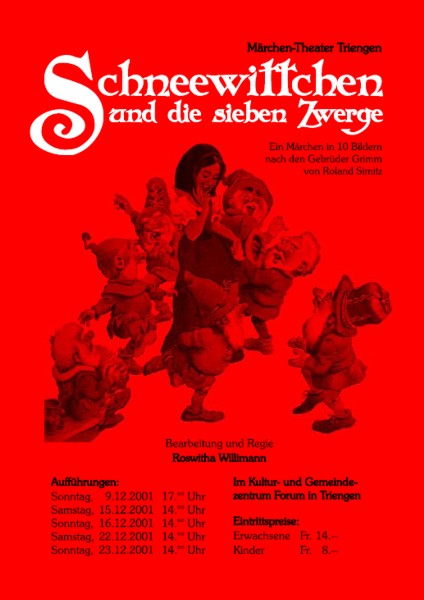 Das Märchen «Schneewittchen» der Gebrüder Grimm wurde von Roland Simitz für die Bühne in Mundart übersetzt. Unsere Regisseurin Roswitha Willimann hat den Text überarbeitet und gekonnt in Szene gesetzt.