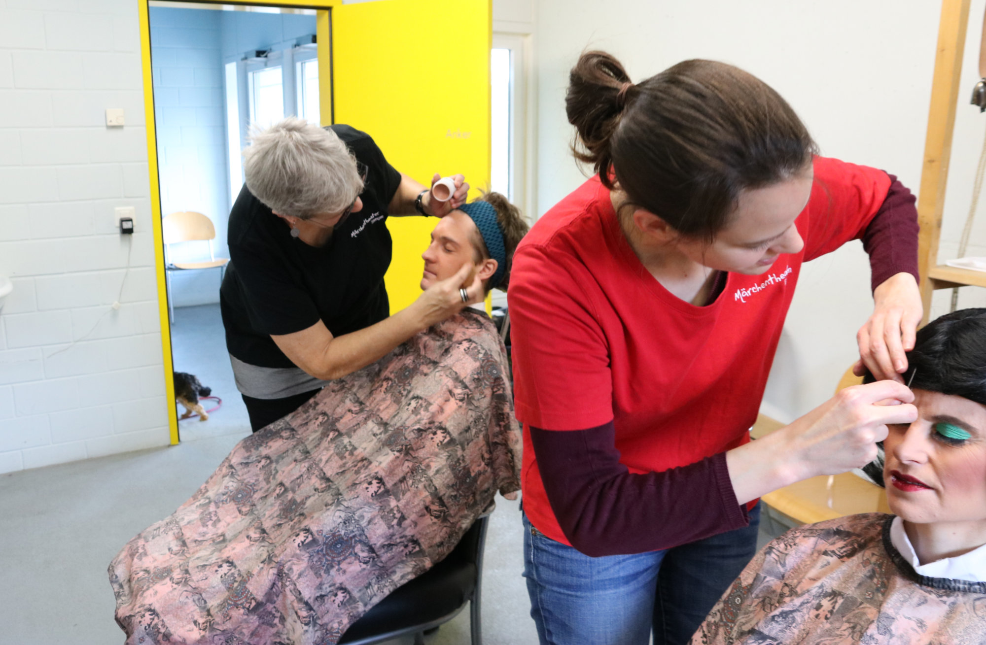 Die Maske ist ein breites und kreatives Arbeitsgebiet, in dem Gesichter geschminkt, Haare frisiert, Perücken aufgesetzt und Masken modelliert werden. Das Kostümteam organisiert die Kleider, die die Schauspieler für ihre Rollen benötigen. Beim Märchentheater sind oft fantasievolle und originelle Masken und Kostüme gefragt.