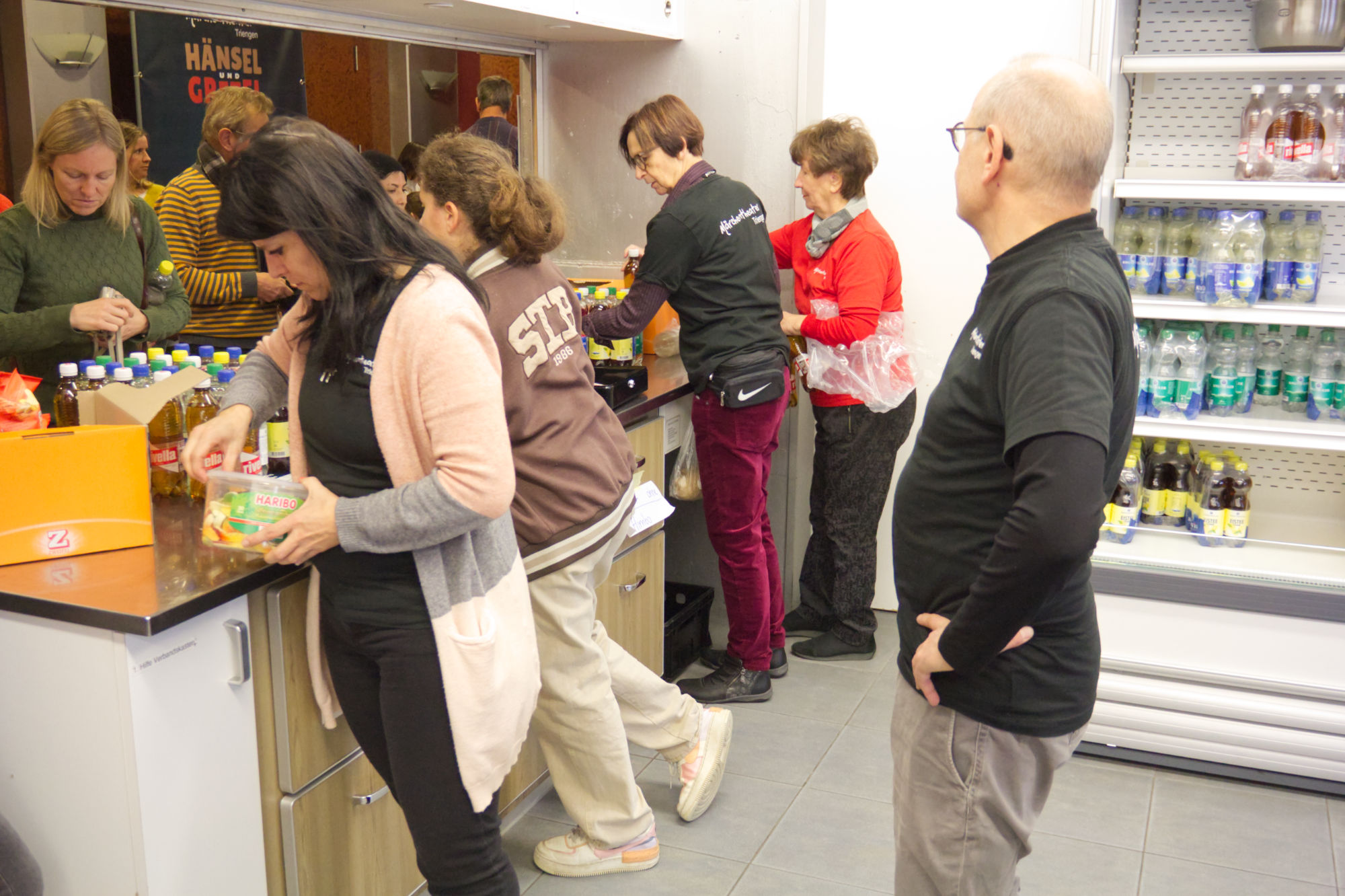 Um den Theateraufenthalt noch angenehmer zu gestalten, bieten wir unseren kleinen und grossen Gästen vor der Aufführung und in den Pausen Snacks und Getränke an. Deshalb führen wir einen Kiosk, und soweit es unsere personellen Kapazitäten erlauben, auch ein kleines Märlibeizli, wo sich die Besucher wärmen und verpflegen können.